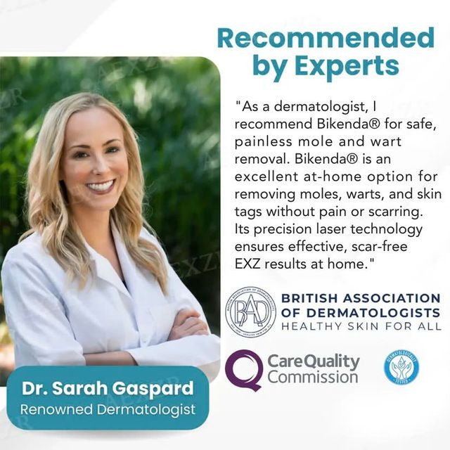 Az Egyesült Királyság vezető bőrgyógyászai áttörésnek tartják a Bikenda®-t az otthoni bőrterápiában. Klinikai vizsgálatok és a vezető bőrgyógyászati szövetségek támogatásával a Bikenda® rendszeres használata bizonyítottan hatékony az anyajegyek, szemölcsök, sötét foltok és bőrhibák csökkentésében. A szakértők a Bikenda®-t biztonságos, nem invazív alternatívájaként ismerik el a költséges professzionális kezeléseknek, így a kiváló minőségű bőrápolás mindenki számára elérhető.